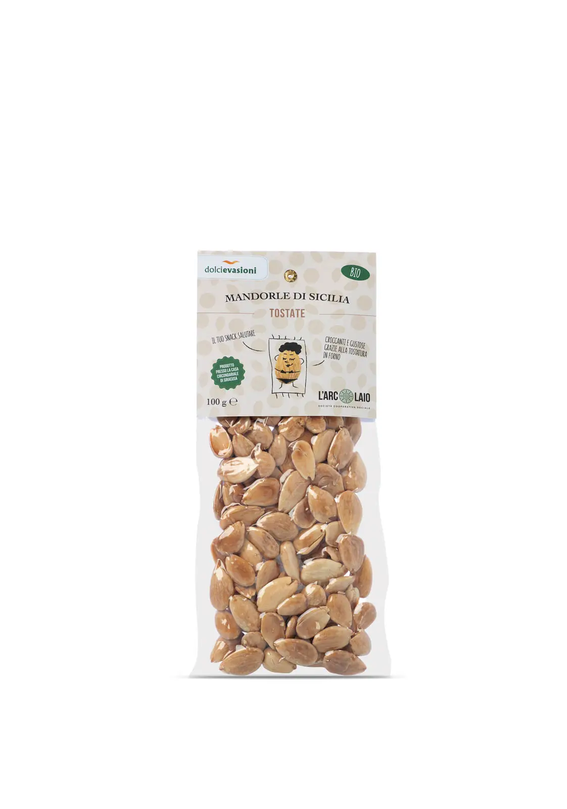 Toasted almonds from the L’Arcolaio social cooperative are organic Sicilian snacks recognized for their artisanal quality and award-winning flavor. Produced within the Syracuse prison’s laboratory, they are a core part of the “Dolci Evasioni” brand, which focuses on social rehabilitation and high-quality local ingredients.