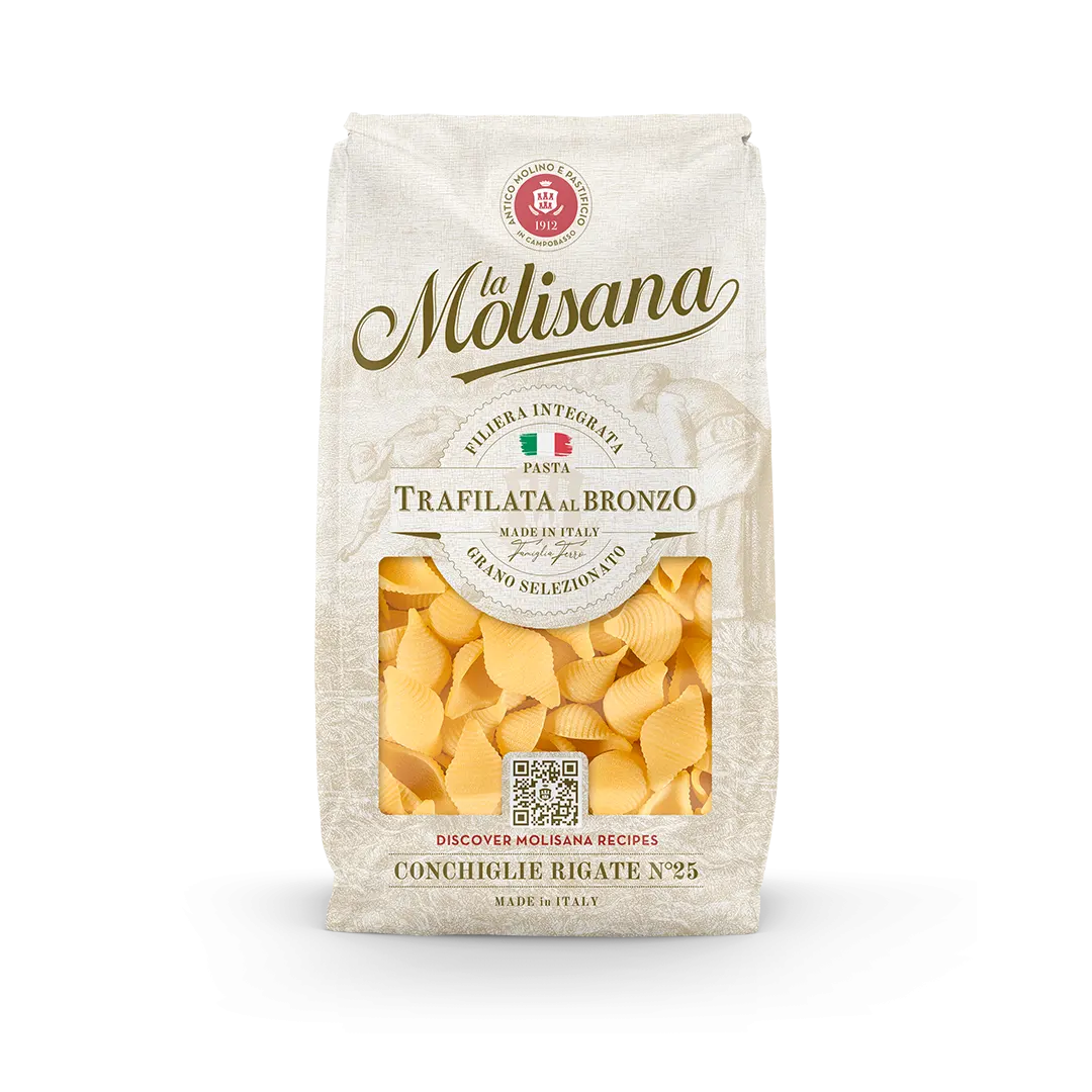 Conchiglie Rigate La Molisana is a premium ridged shell-shaped pasta made from 100% Italian durum wheat semolina.