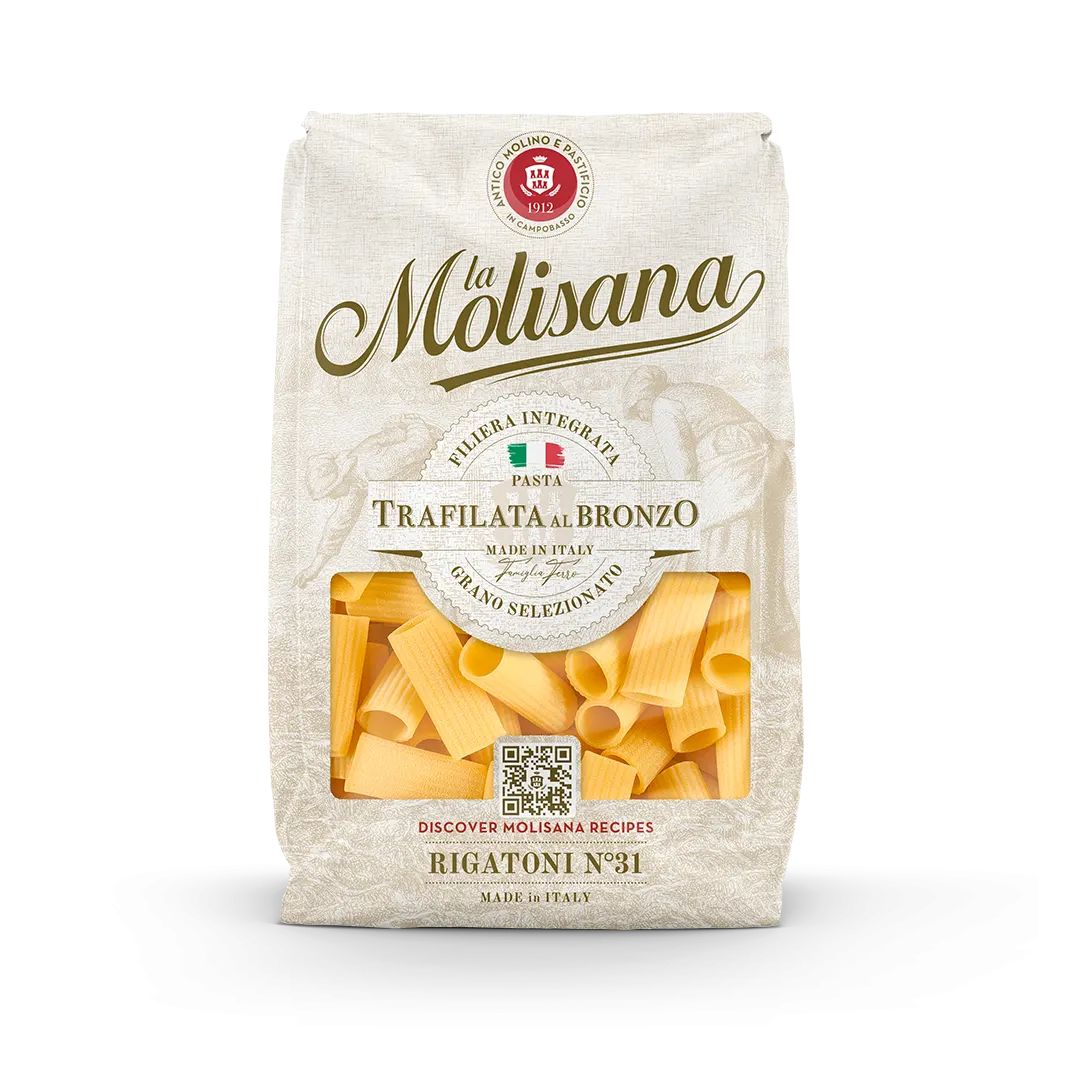 Rigatoni La Molisana is a classic pasta shape crafted from 100% Italian durum wheat semolina.